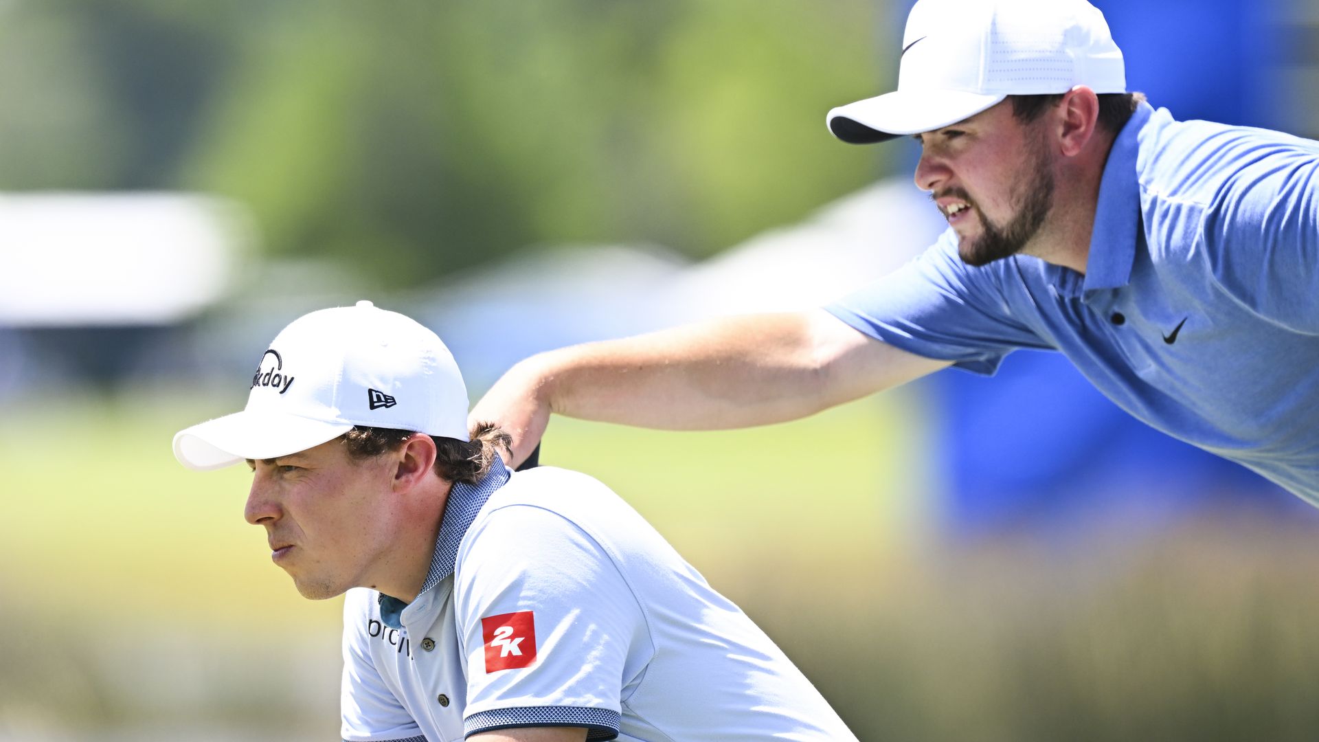 Matt (L) and Alex Fitzpatrick on the ninth green during Round 1. Photo: Tracy Wilcox/PGA TOUR via Getty Images
