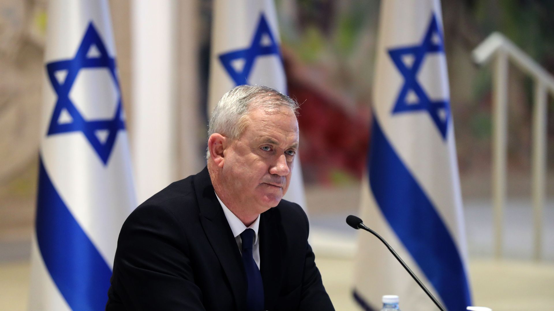 Defense Minister Benny Gantz attends a Cabinet meeting. Photo: Abir Sultan/POOL/AFP via Getty