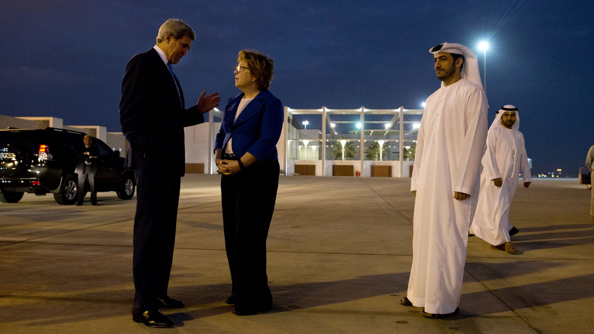 Leaf with then-Secretary of State Kerry in the UAE in 2015. Photo: Jacquelyn Martin/AFP via Getty