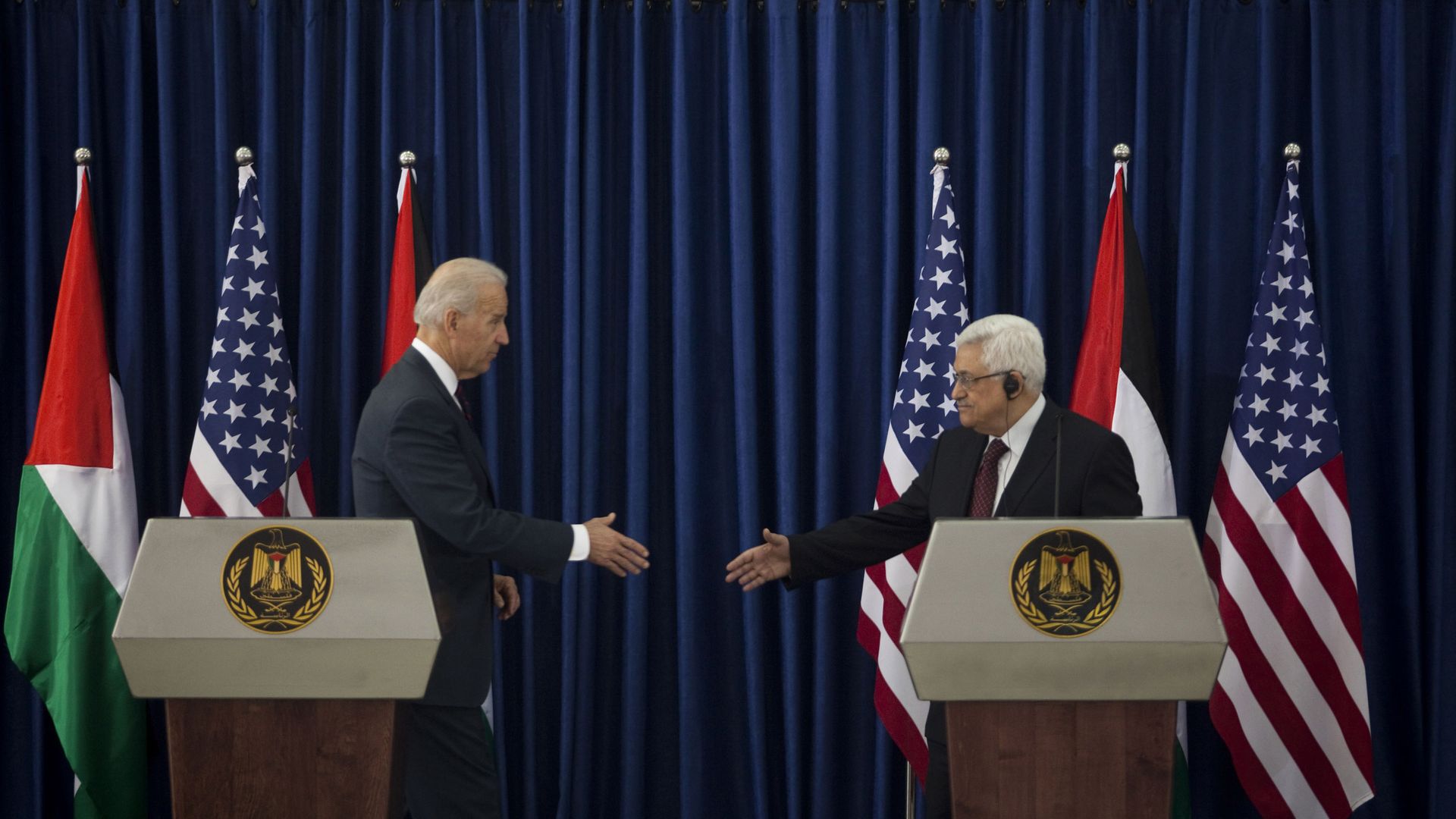 Biden with Abbas in 2010. Photo: Thaer Ganaim/PPO via Getty Images