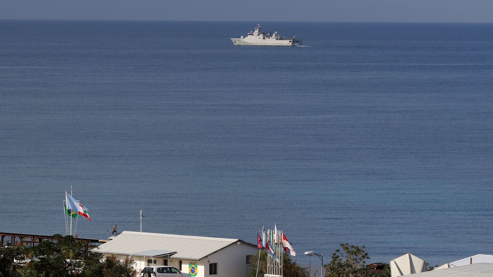 A UN peacekeeping boat off of Naqoura. Photo: Mahmoud Zayyat/AFP via Getty