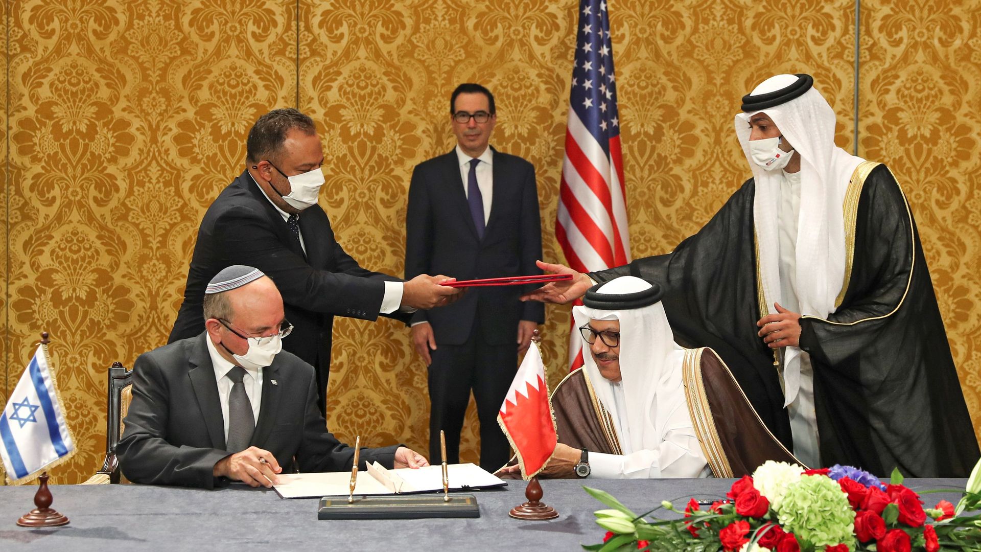 Sealing the deal, in Manama. Photo: Onen Zvulun/AFP via Getty