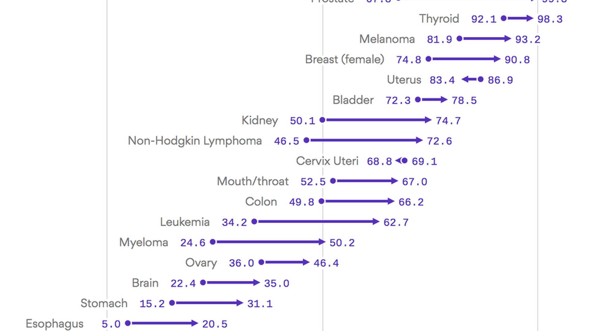But the survival rates are still low for several kinds of cancers — including brain cancer, which killed Biden's son Beau.