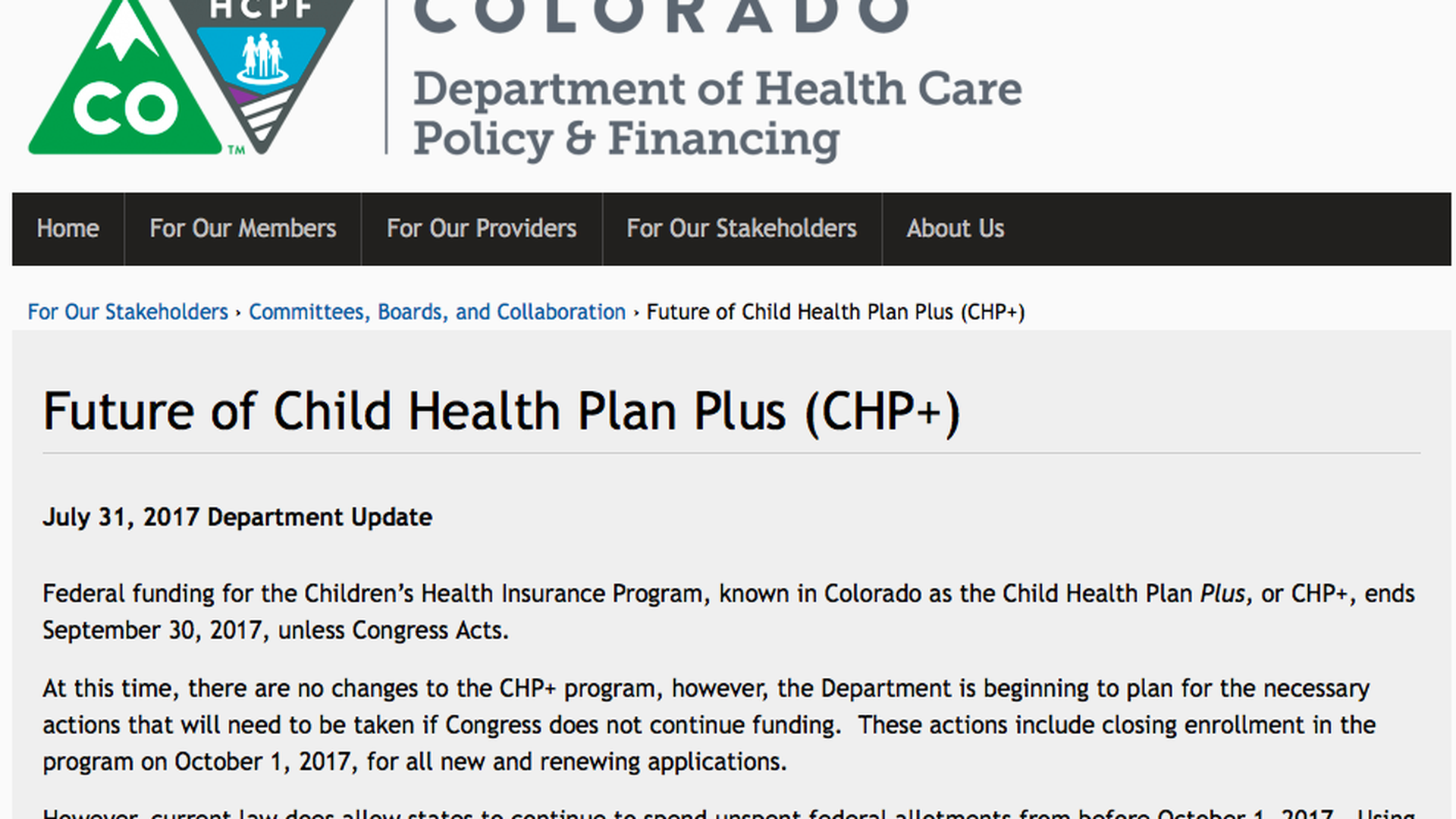 - Warning families that they may not be able to renew their CHIP coverage. Colorado has already done this.