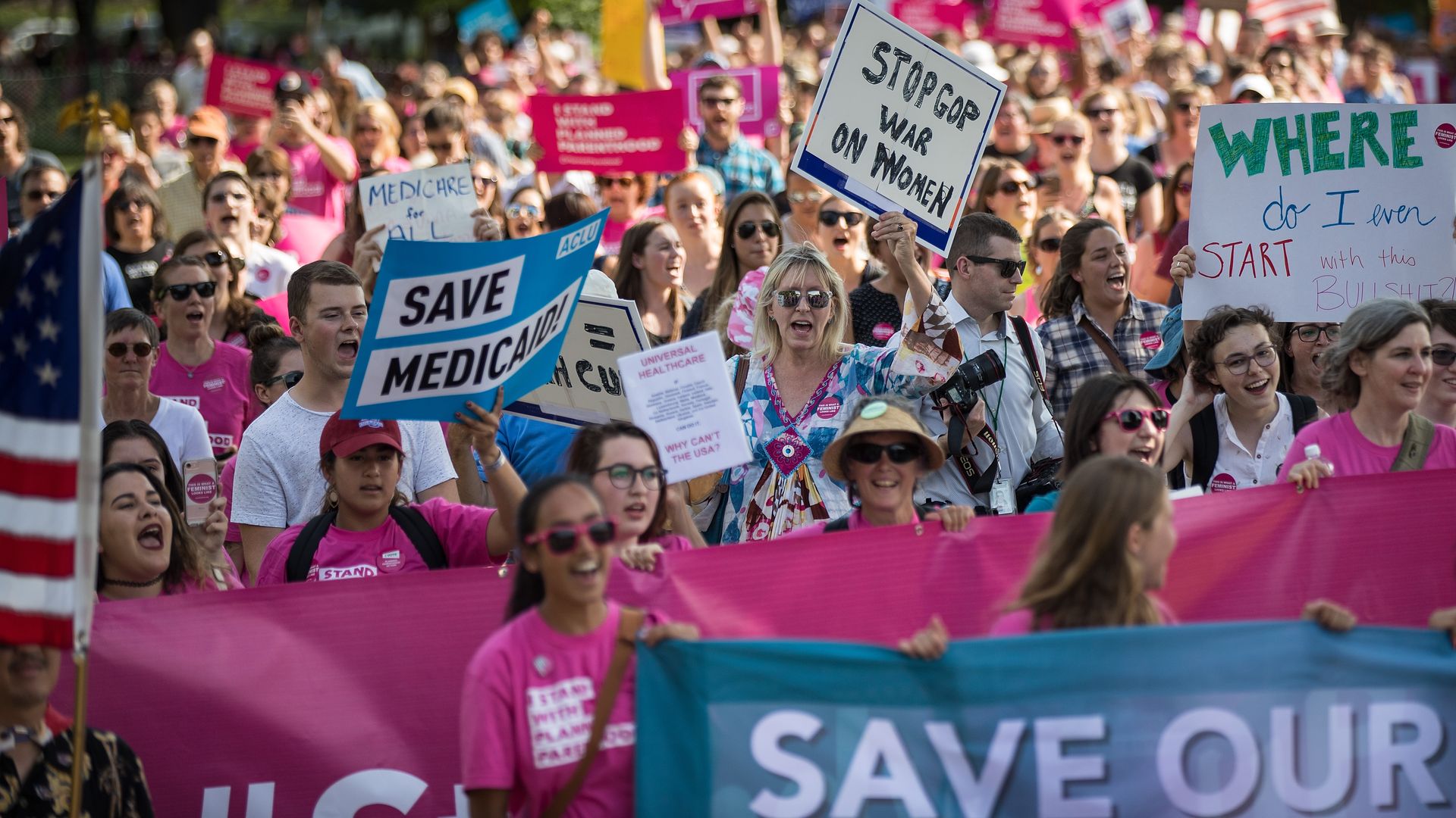 The bottom line: That may not be a surprise, since the law was under attack — but the point is that the energy in health care protests has shifted from the right to the left.