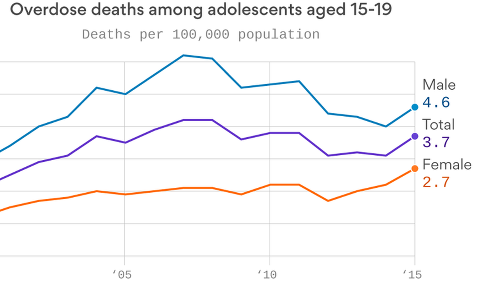 Why it matters: The opioid epidemic isn't just affecting prime-age working adults. It's also taking the lives of more high schoolers who are too young to vote.