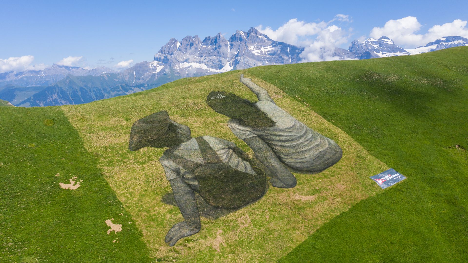A monumental "Land'Art" fresque by artist Saype in Les Crosets, Switzerland. Photo: Harold Cunningham/WireImage