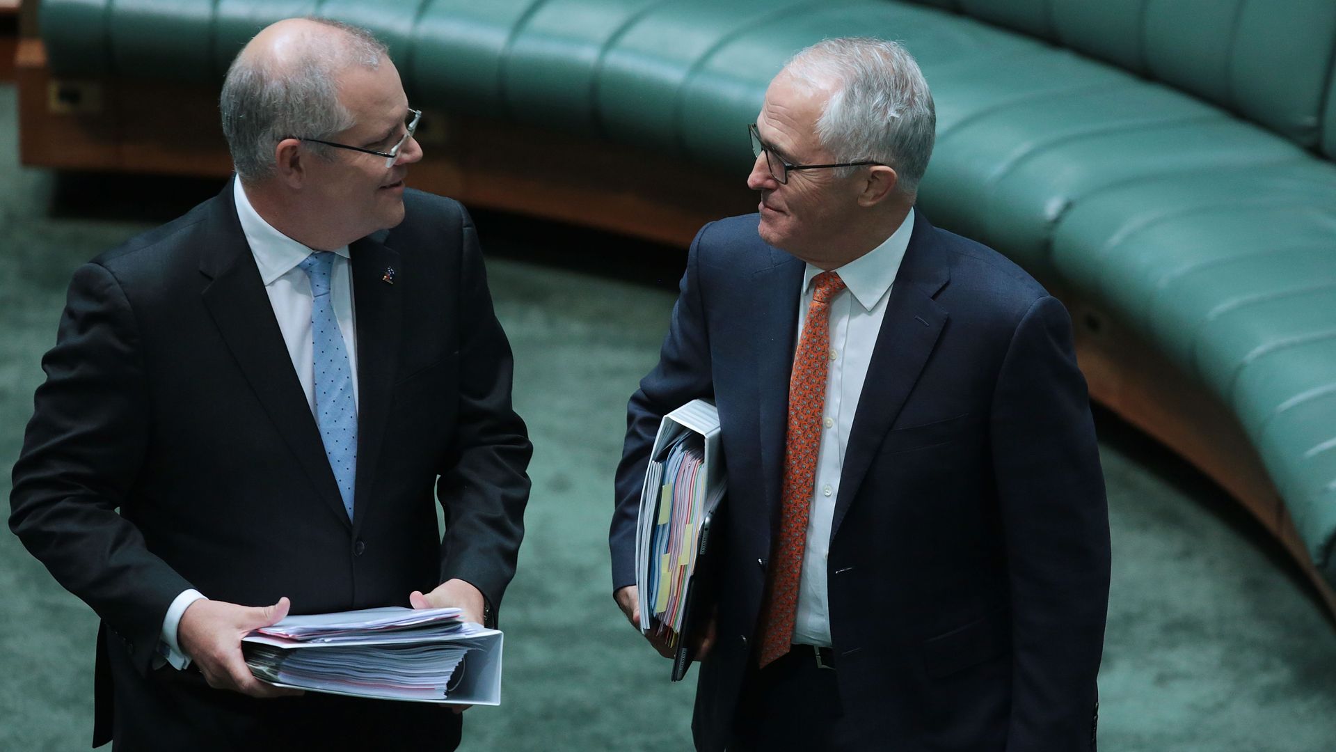 Then-PM Turnbull (R) and his successor, Morrison, last year. Photo: Stefan Postles/Getty Images