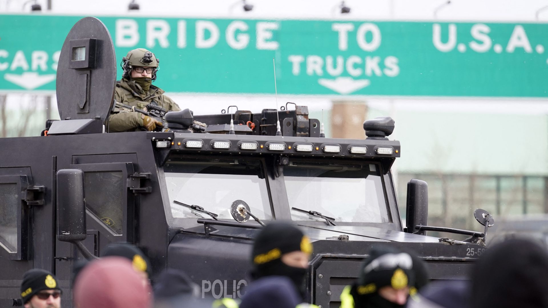 Canadian police move protesters off of Ambassador Bridge last week. Photo: Geoff Robins/AFP via Getty