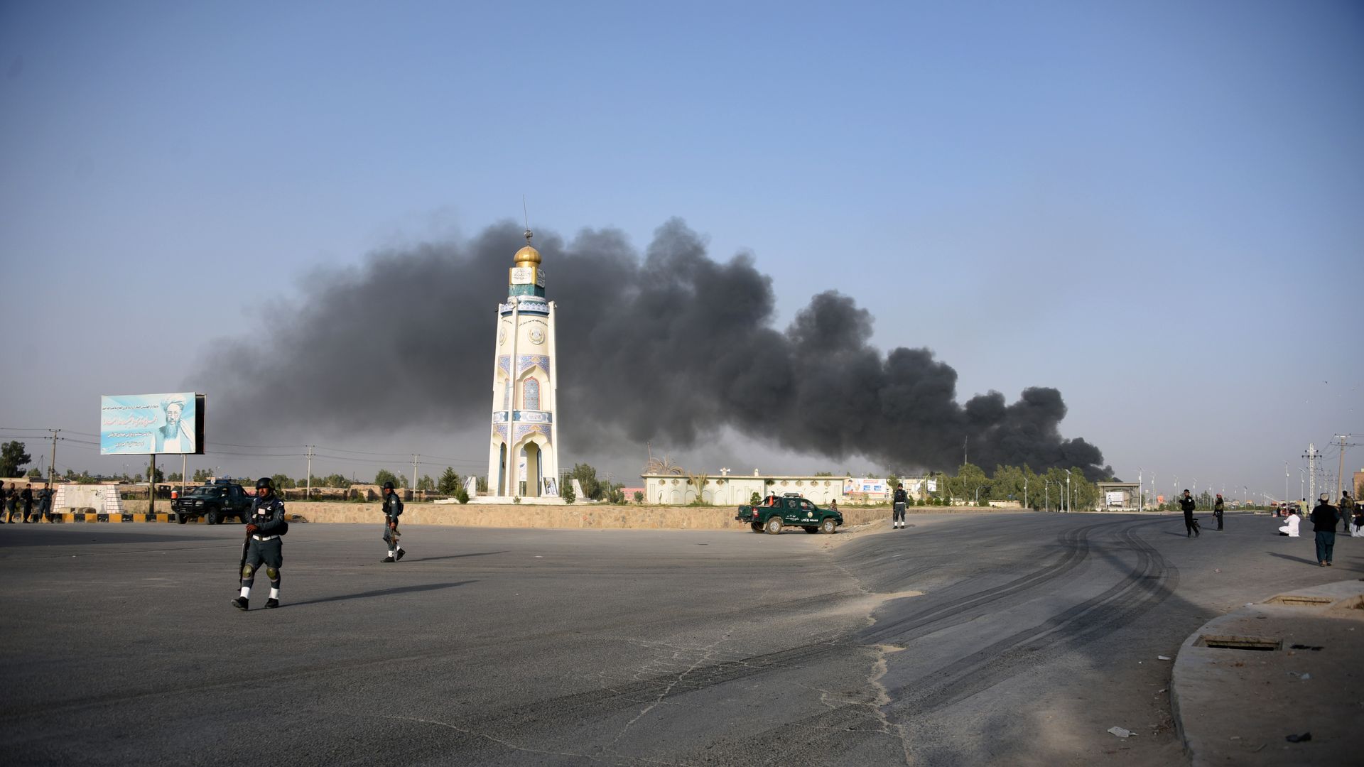 Afghan policemen arrive near a site of a car bomb in Kandahar. Photo: Javed Tanveer/AFP/Getty Images