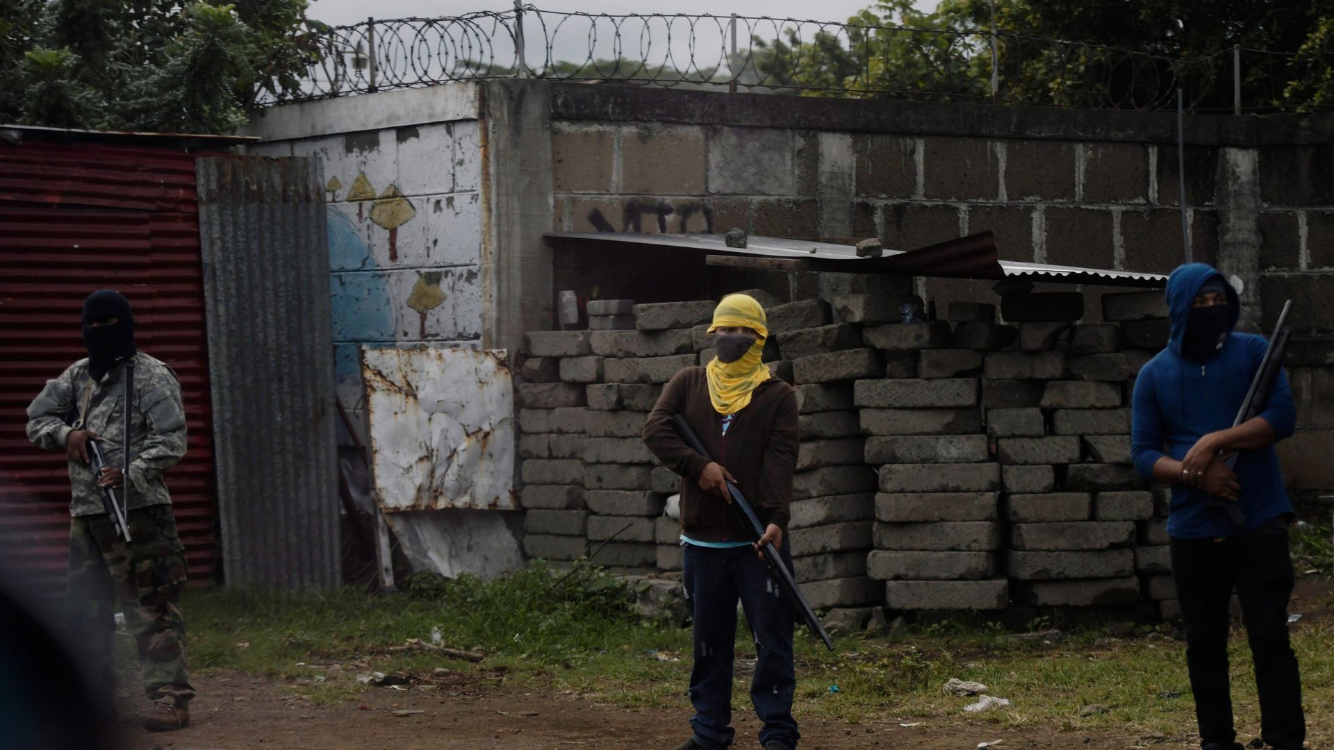 Paramilitaries guard a road where anti-government protests were planned. Photo: Marvin Recinos/AFP/Getty Images
