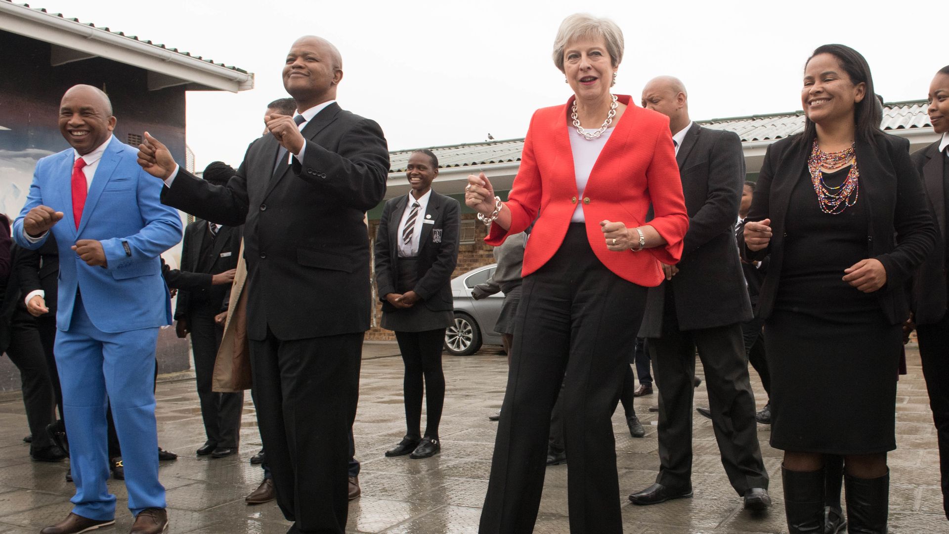 Theresa May dances during a visit to South Africa. Photo: Stefan Rousseau/PA Images via Getty Images