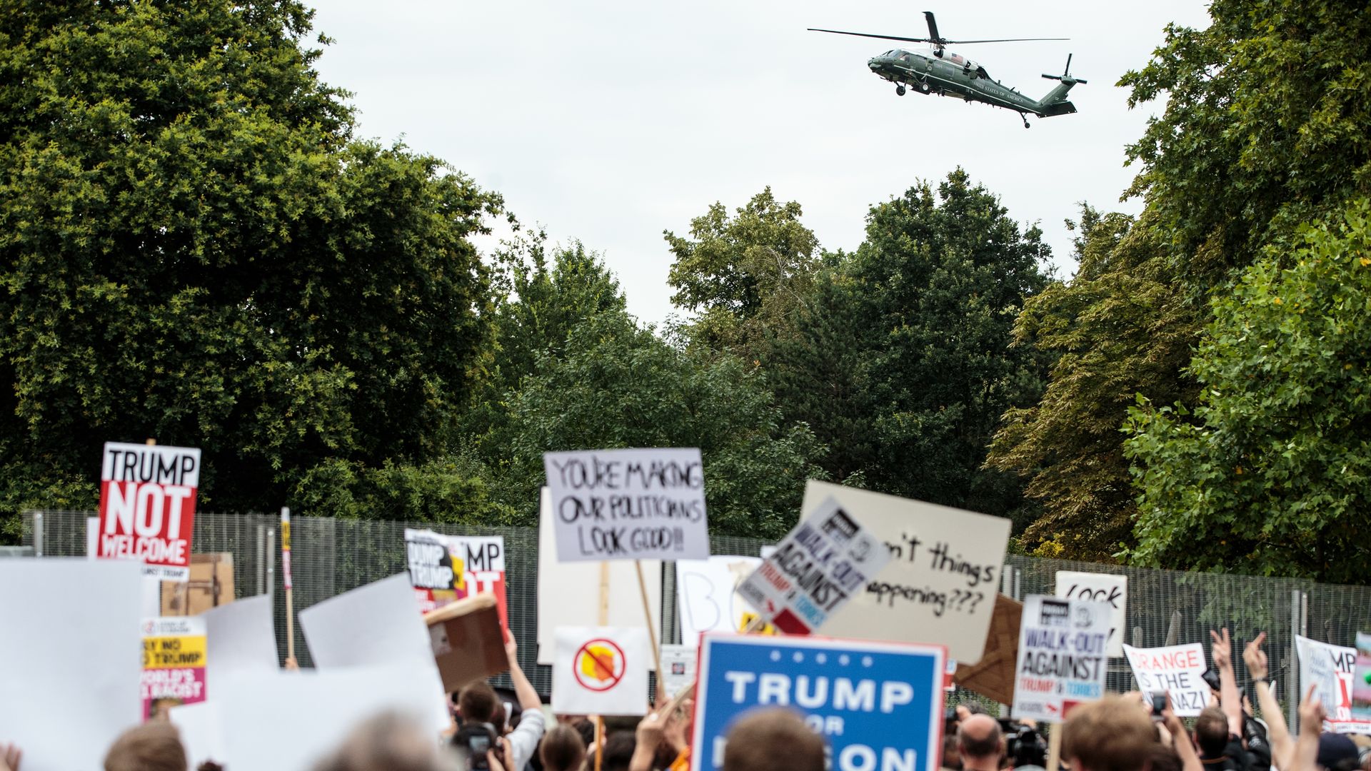 Protesters in London greet Marine One. Photo: Jack Taylor/Getty Images