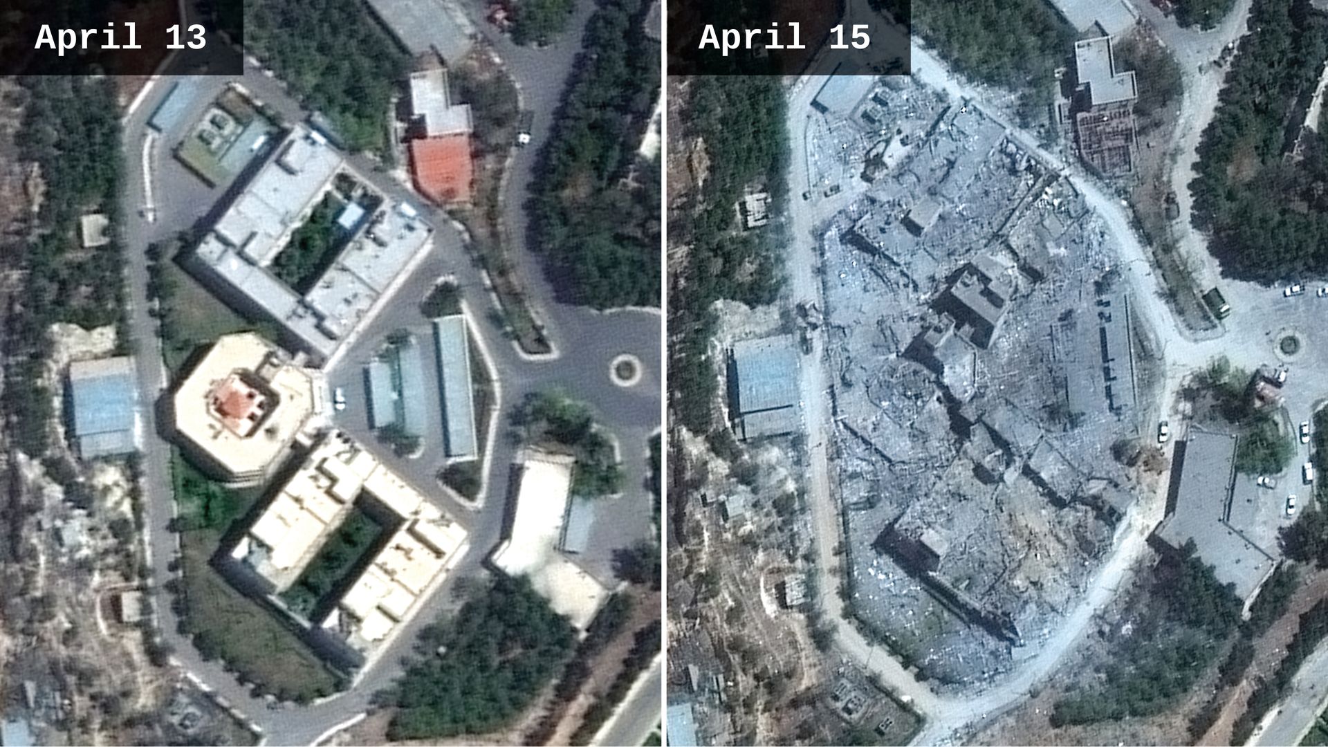 These satellite images show the Barzah Research and Development Center before and after the joint air strike that occurred late last week. Satellite images: ©2018 DigitalGlobe