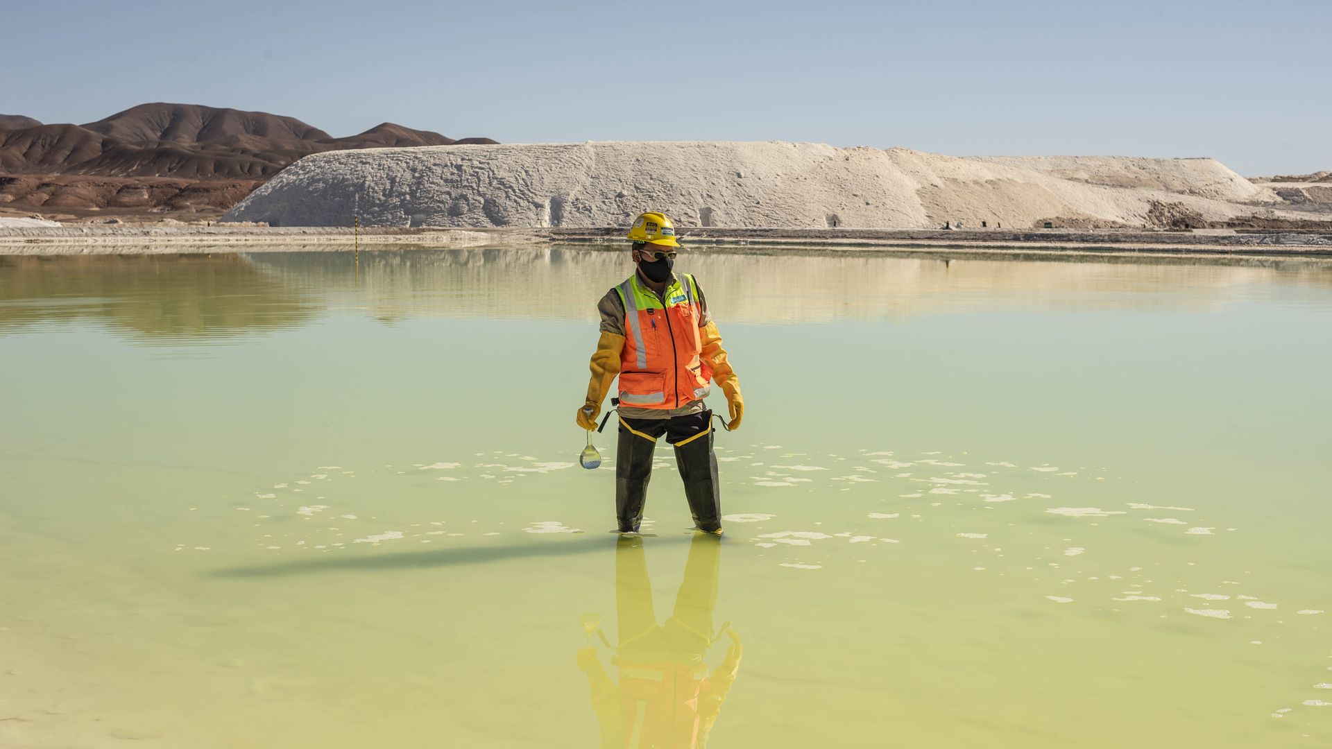 A worker at an Albemarle Corp. lithium mine in Calama, Chile. Photo: Cristobal Olivares/Bloomberg via Getty Images