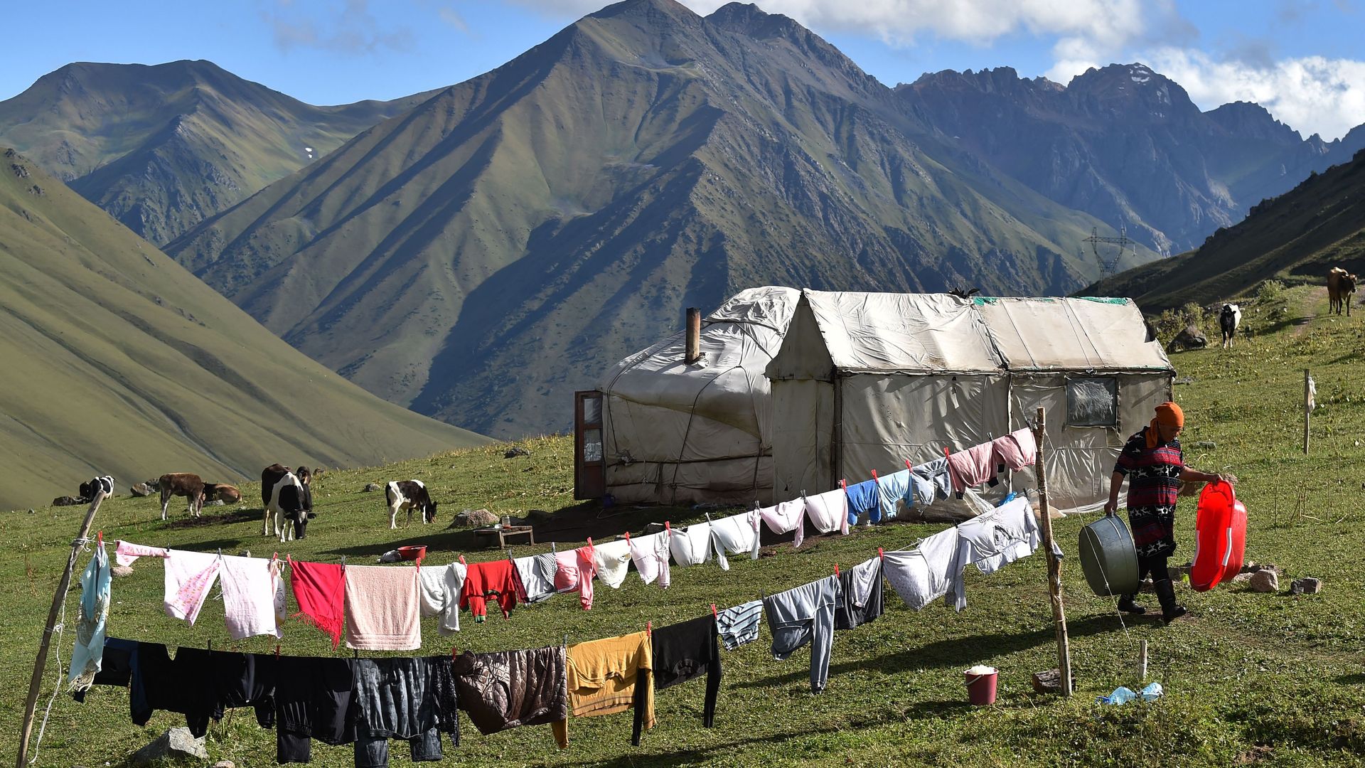 Doing the washing, on the Suusamyr Plateau in Kyrgyzstan. Photo: Vyacheslav Oseledko/AFP via Getty