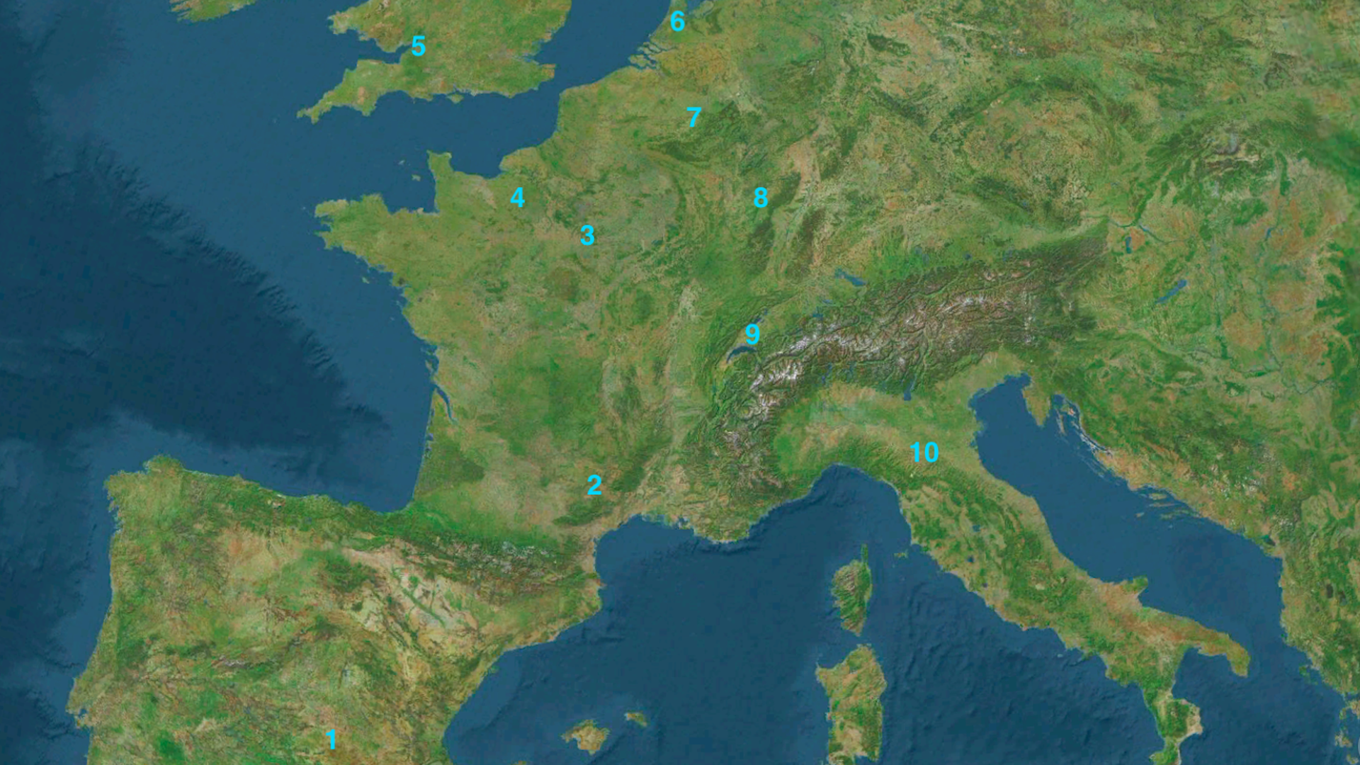 - To help you get your bearings, we're starting in Spain with stops in France (2–4, 8), the U.K. (5), the Netherlands (6), Belgium (7), Switzerland (9) and Italy (10).