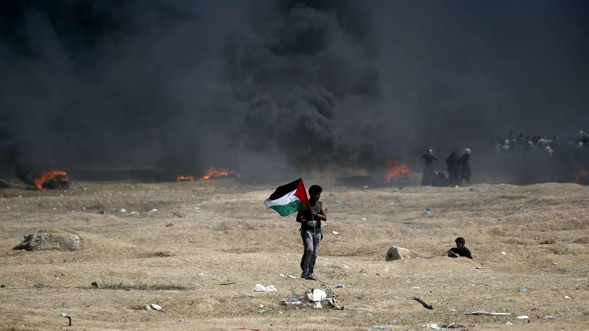 A Palestinian protester near the Gaza border. Photo: Thoms Coex/AFP/Getty Images