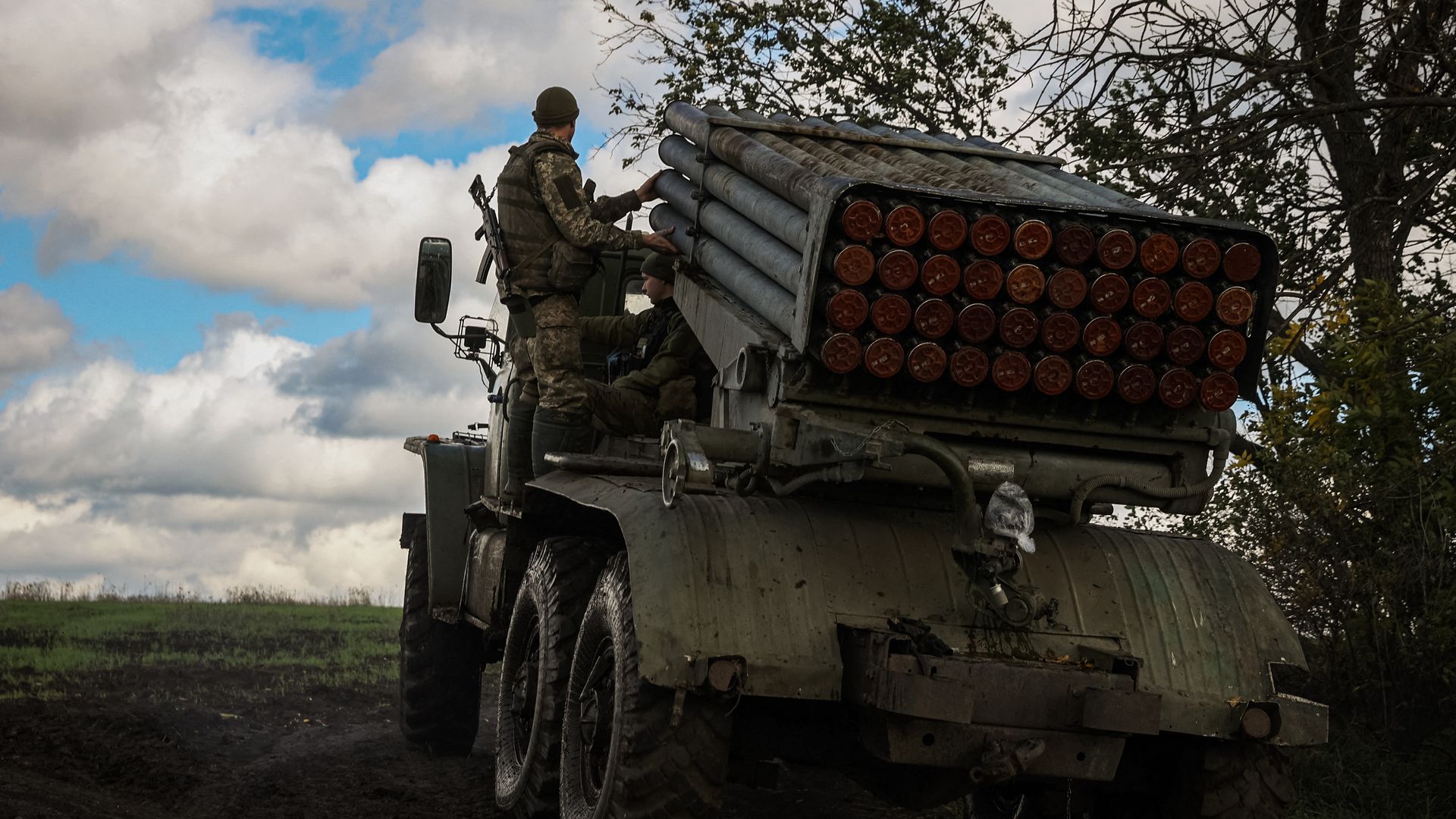 The crew of a BM-21 multiple rocket launcher near the front lines in Donetsk. Photo: Anatoli Stepanov/AFP via Getty Images