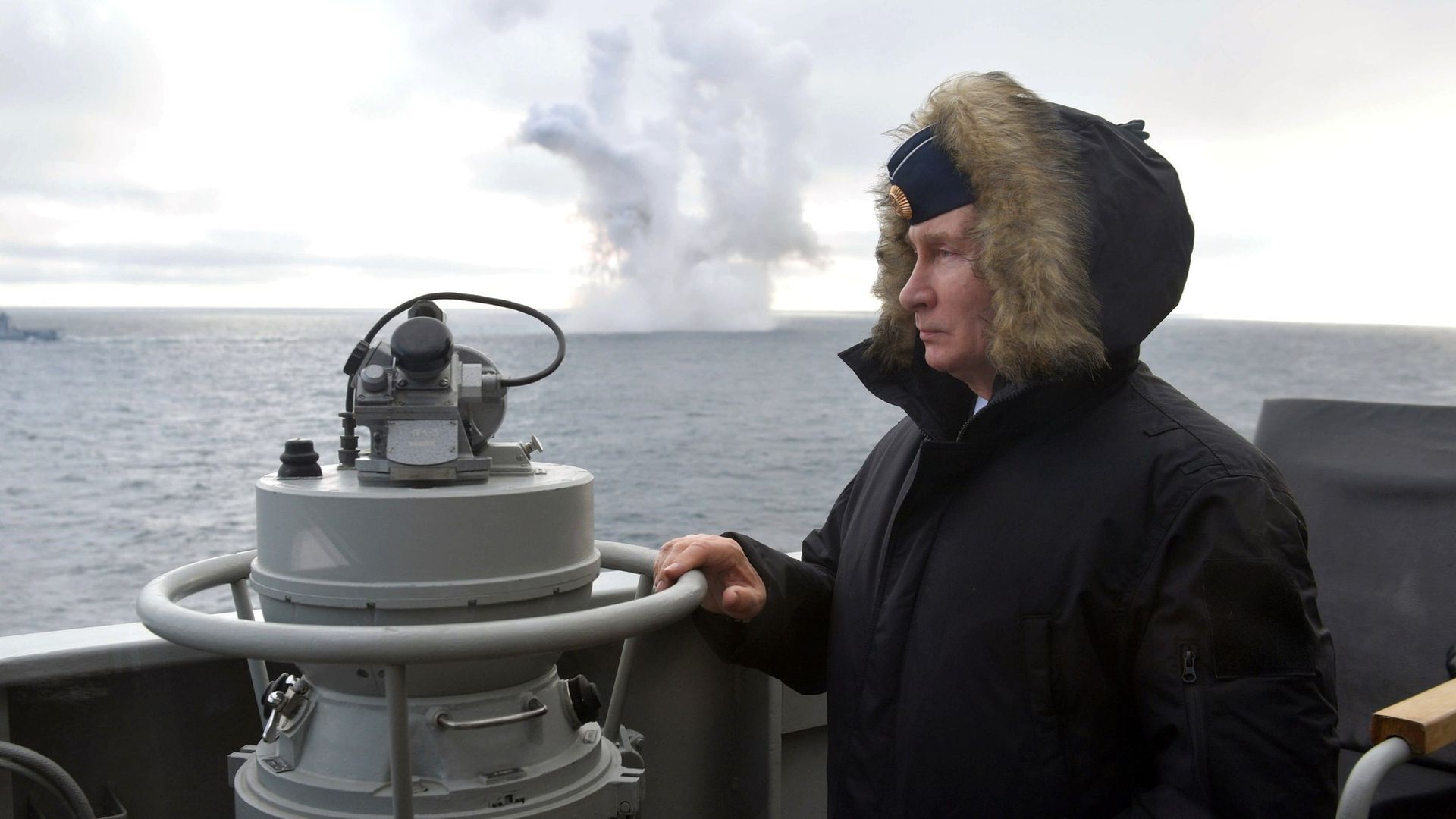 Putin watches a naval exercise from a cruiser in the Black Sea in January 2020. Photo: Alexei Druzhinin/Russian presidency handout via Getty Images
