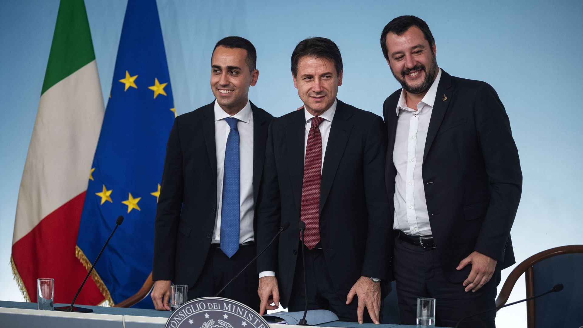 From L-R: Five Star's Di Maio, Prime Minister Conte, Lega's Salvini. Photo: Antonio Masiello/Getty Images