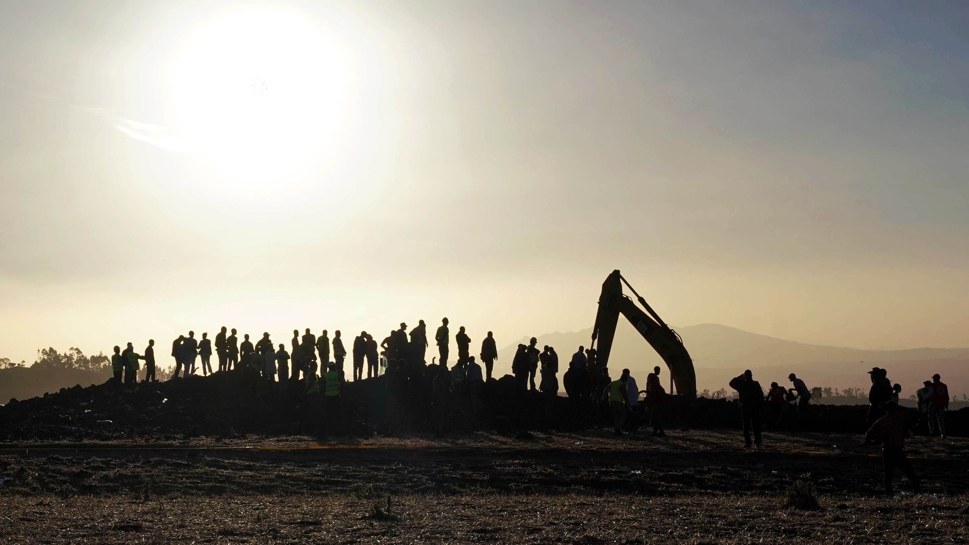 Rescue and recovery personnel at work yesterday in a wheat field just outside the town of Bishoftu, where Ethiopian Airlines Flight 302 crashed. Photo: Jemal Countess/Getty Images