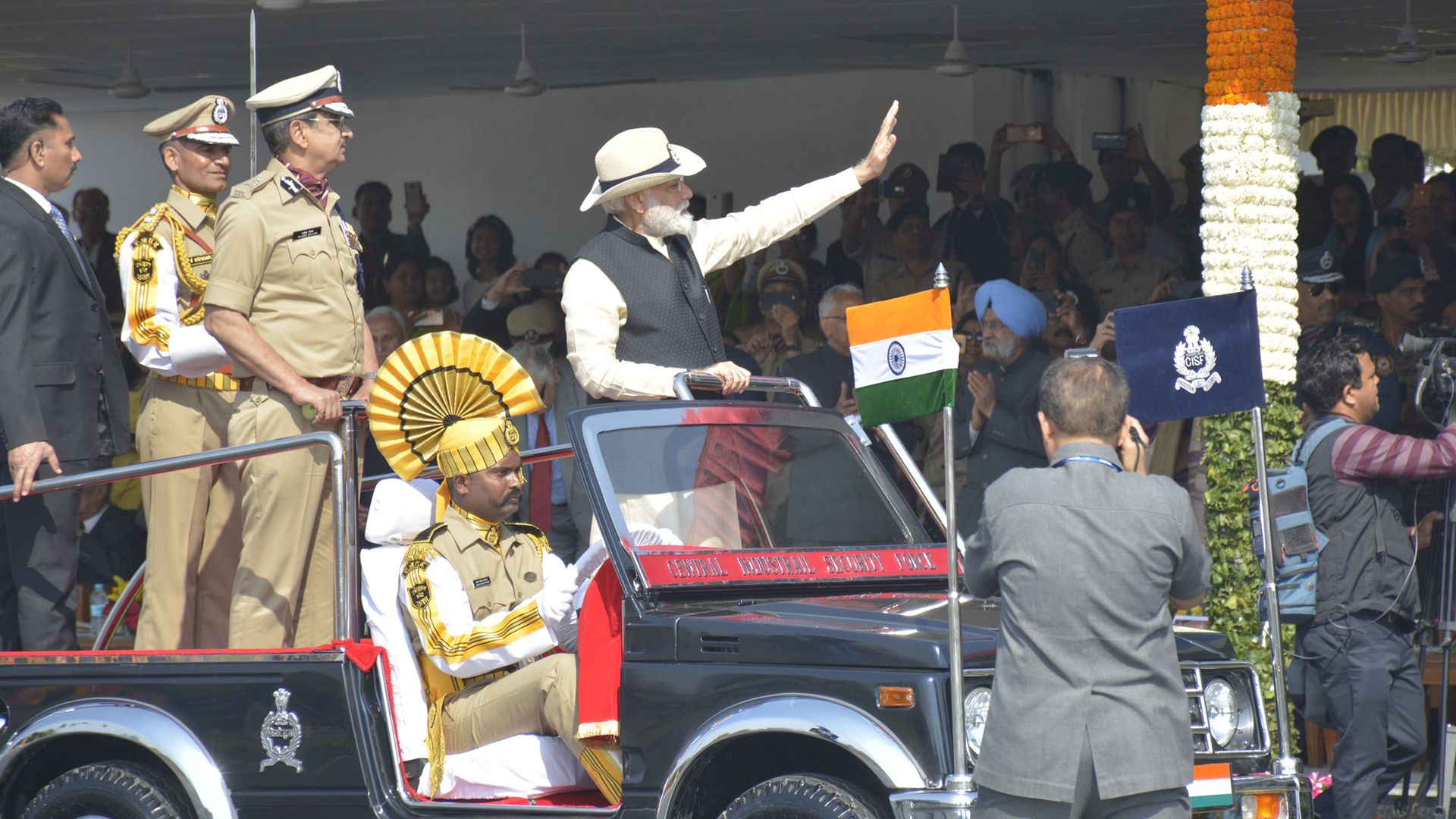 Indian Prime Minister Modi celebrates the 50th Raising Day of the Central Industrial Security Force. Photo: Sakib Ali/Hindustan Times via Getty Images