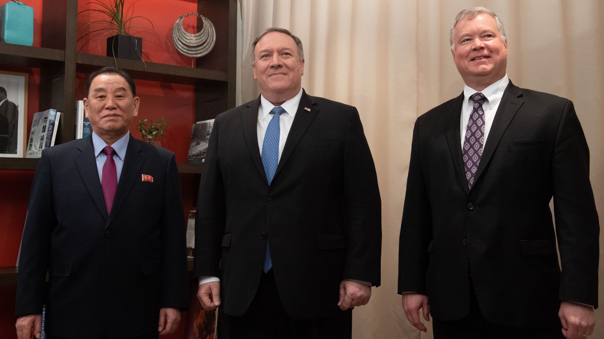 Biegun (R) with Secretary of State Pompeo (C) and North Korean Vice Chairman Kim Yong-chol. Photo: Saul Loeb/AFP/Getty Images