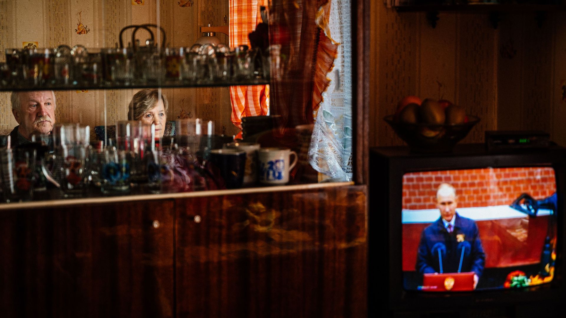 Watching Putin mark Victory Day, from a Dacha near Moscow. Photo: Dimitar Dilkoff/AFP via Getty Images