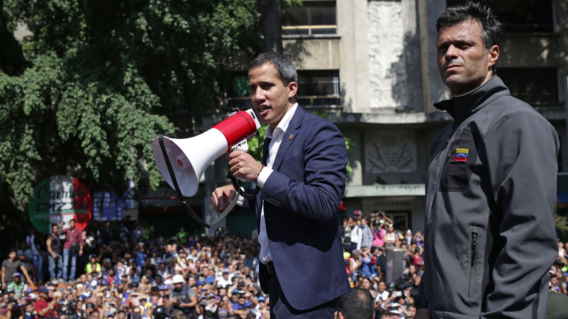 Former opposition leader Leopoldo Lopez (R) is a charismatic Harvard graduate. But it's Guaidó who has the megaphone now. Photo: Cristian Hernandez/AFP/Getty Images