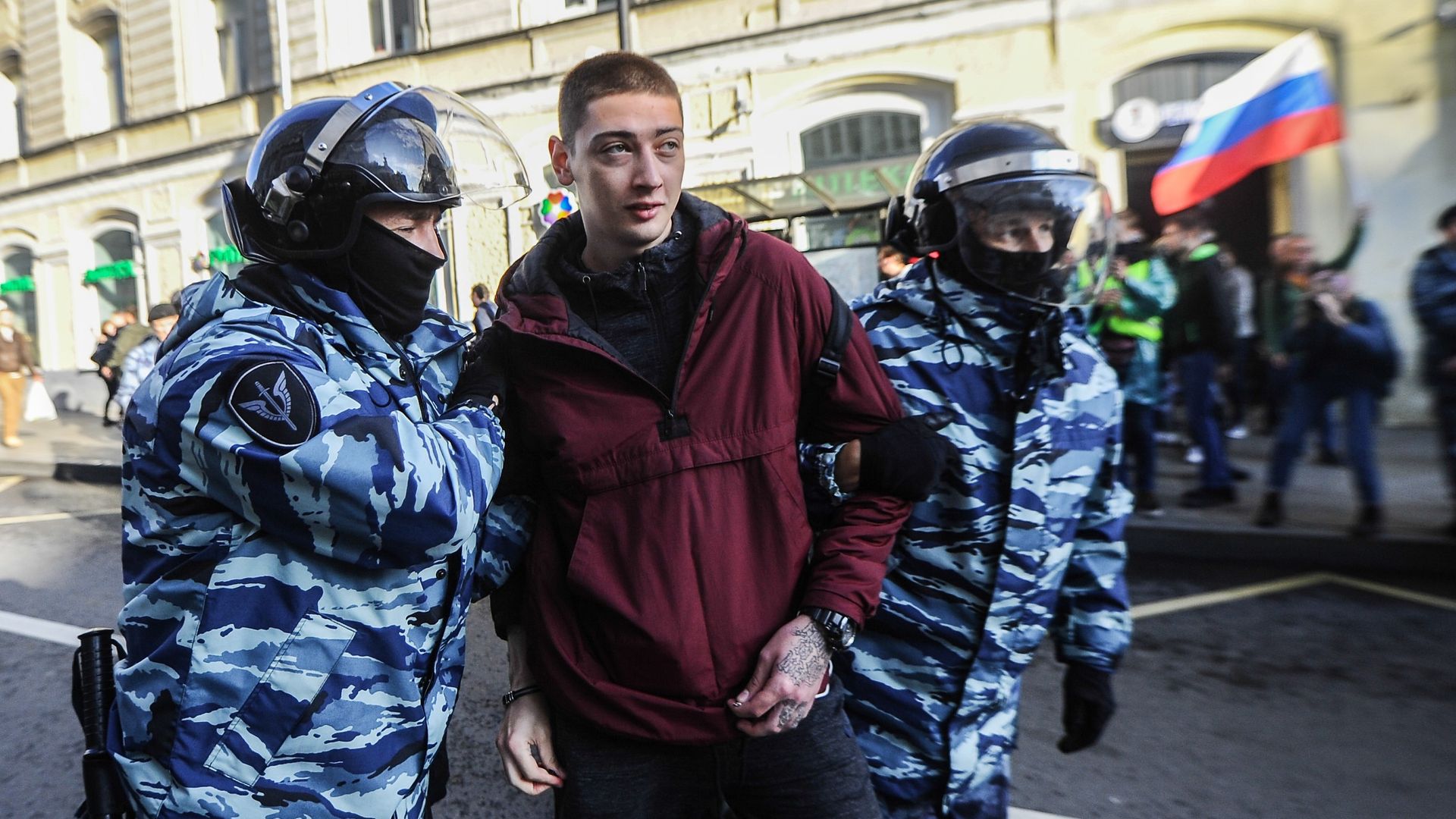A protester is arrested on Saturday in Moscow. Photo: Anadolu Agency via Getty
