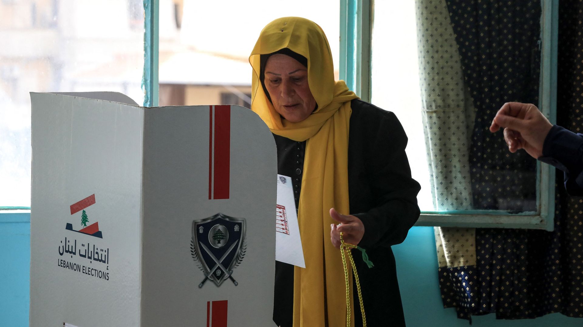 A Lebanese woman prepares her ballot at a polling station in Beirut's southern suburbs on May 15. Photo: Louai Beshara/AFP via Getty Images