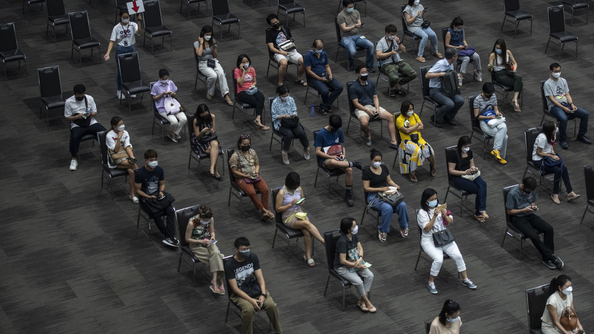 Waiting for a shot, in Bangkok. Photo: Sirachai Arunrugstichai/Getty Images