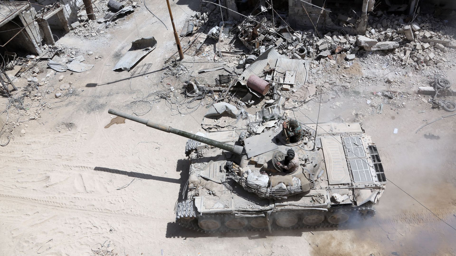Syrian Army soldiers advancing in an area on the eastern outskirts of Douma, where the chemical attack took place. Photo: Stringer/AFP/Getty