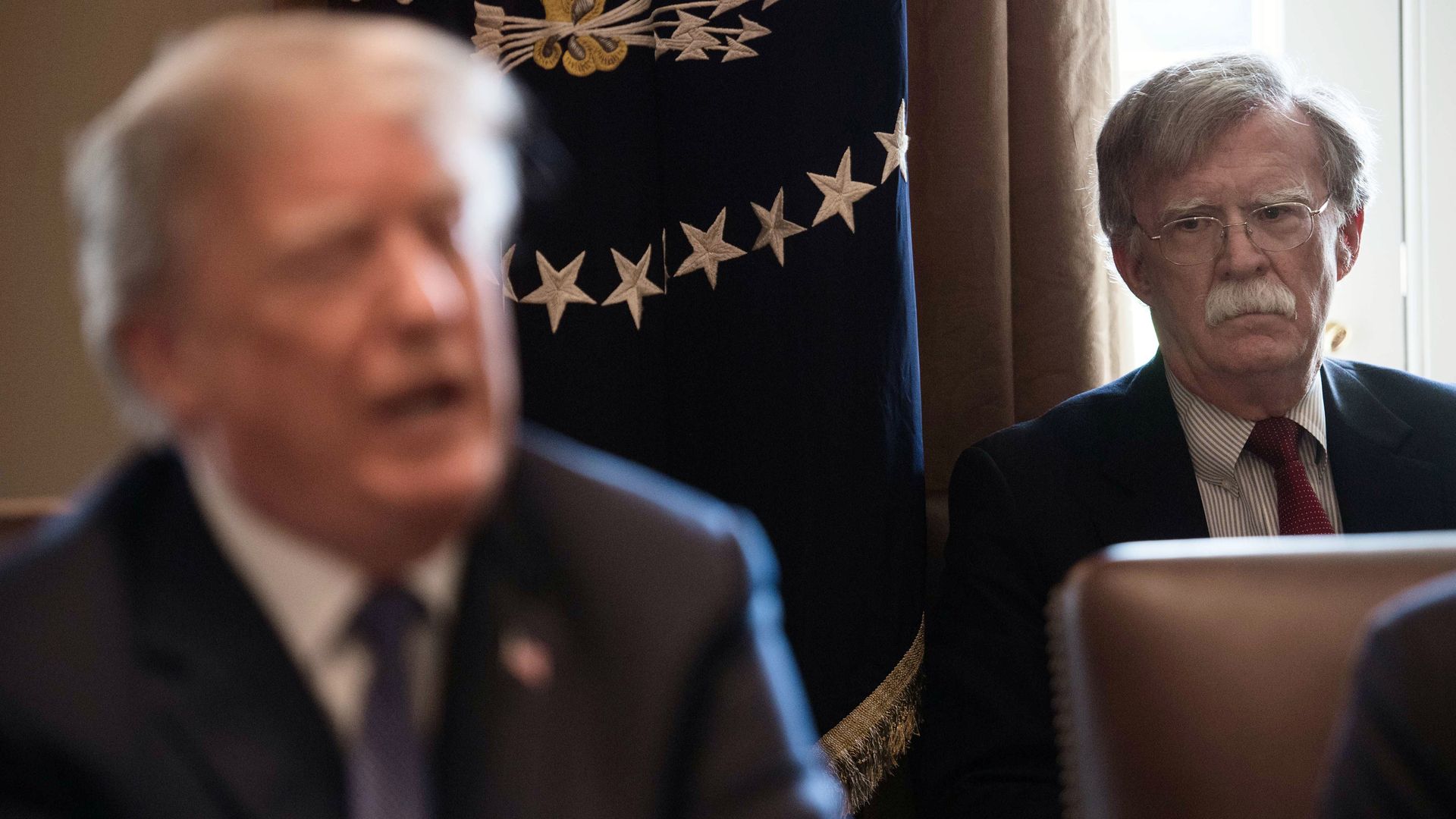 Bolton sat behind Trump at the cabinet meeting, and did not speak. Photo: Nicholas Kamm/AFP/Getty Images