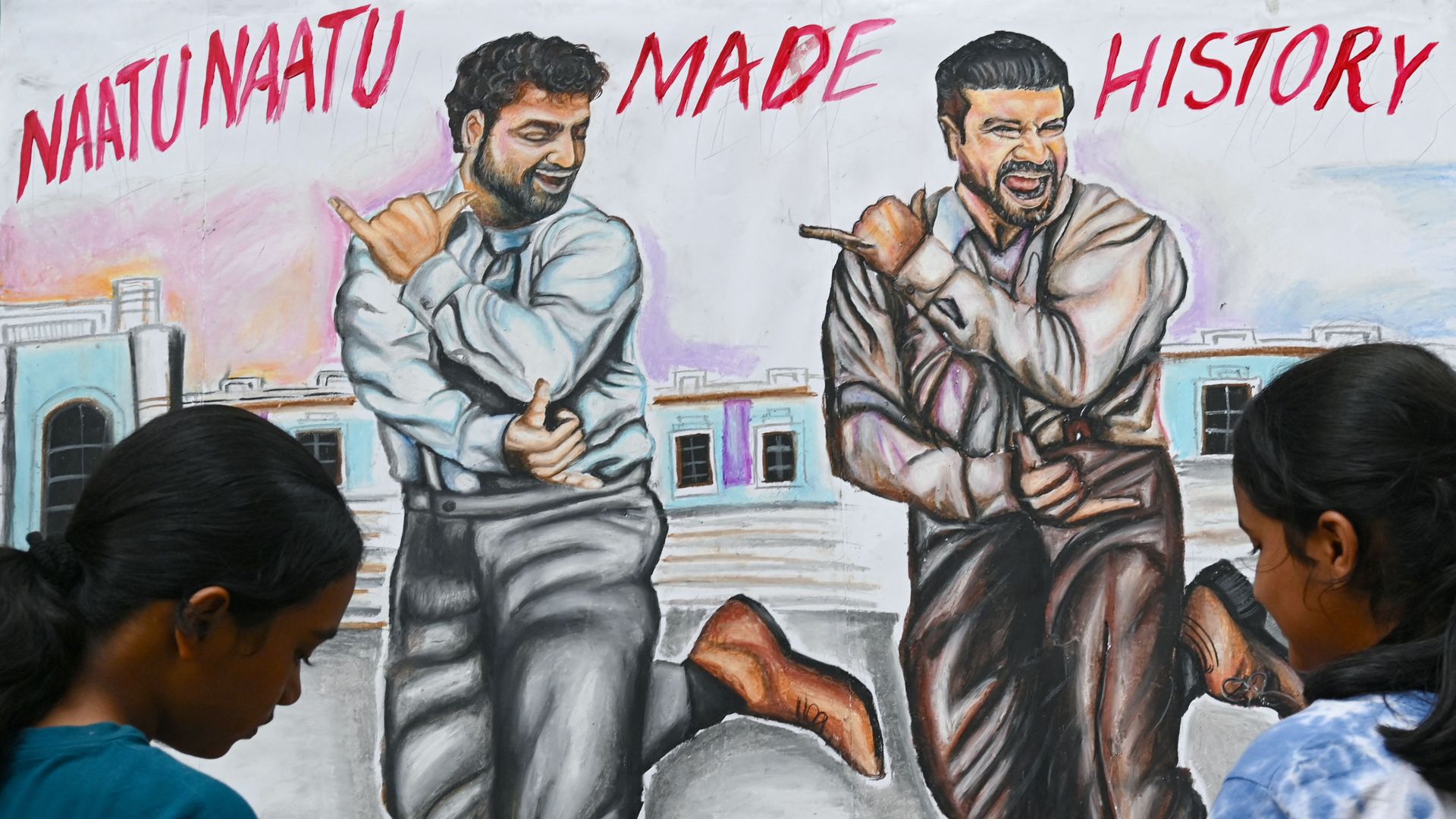 A fresh "Naatu Naatu" mural in Mumbai. Photo: Indranil Mukherjee/AFP via Getty Images