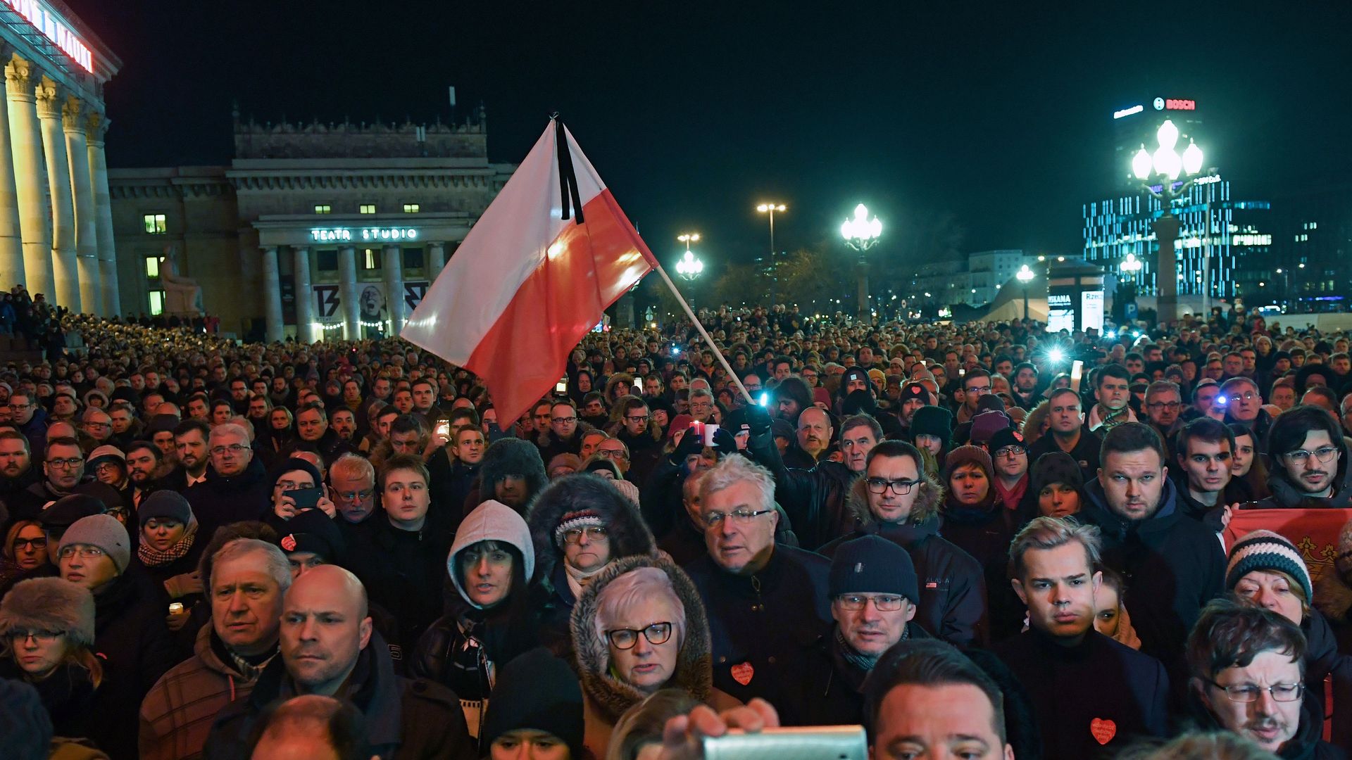 Poles gather under the banner "Stop Hatred" to honor Adamowicz. Photo: Janek Skarzynski AFP/Getty