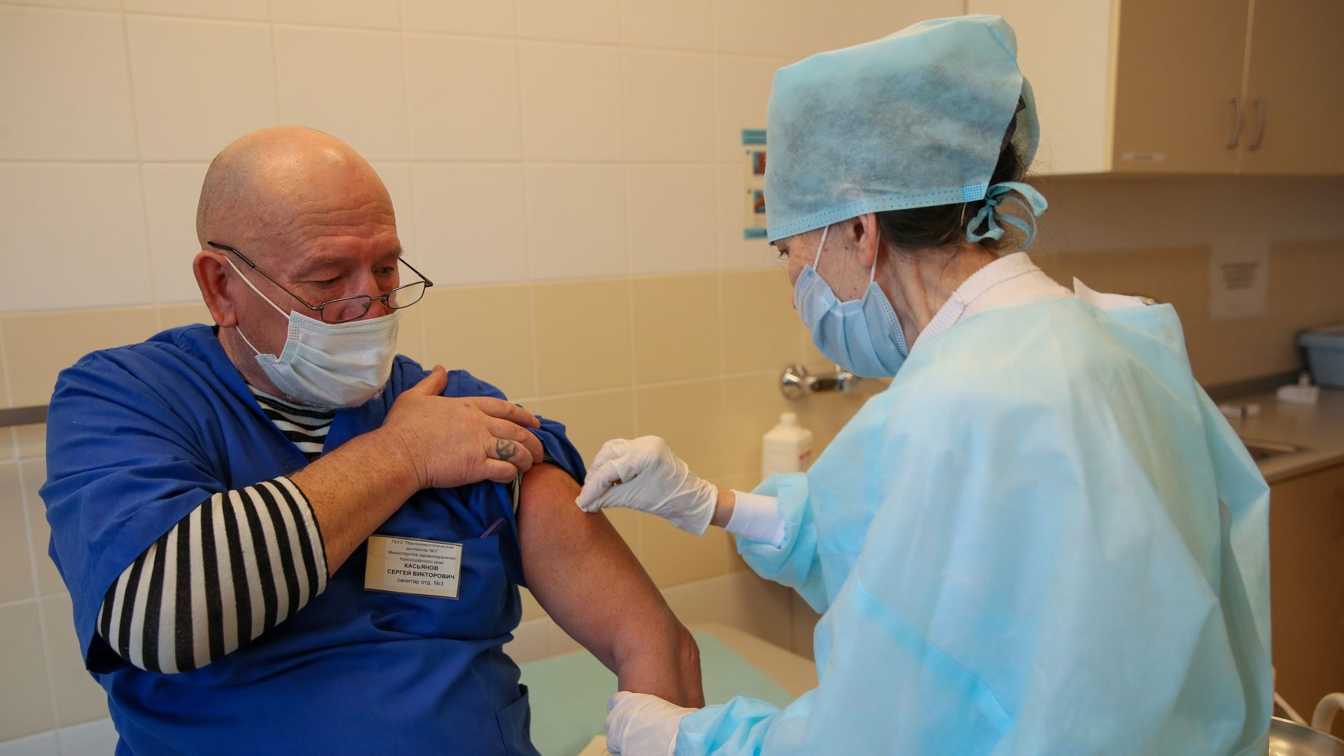 Receiving the vaccine, in Sochi. Photo: Dmitry Feoktistov\TASS via Getty Images
