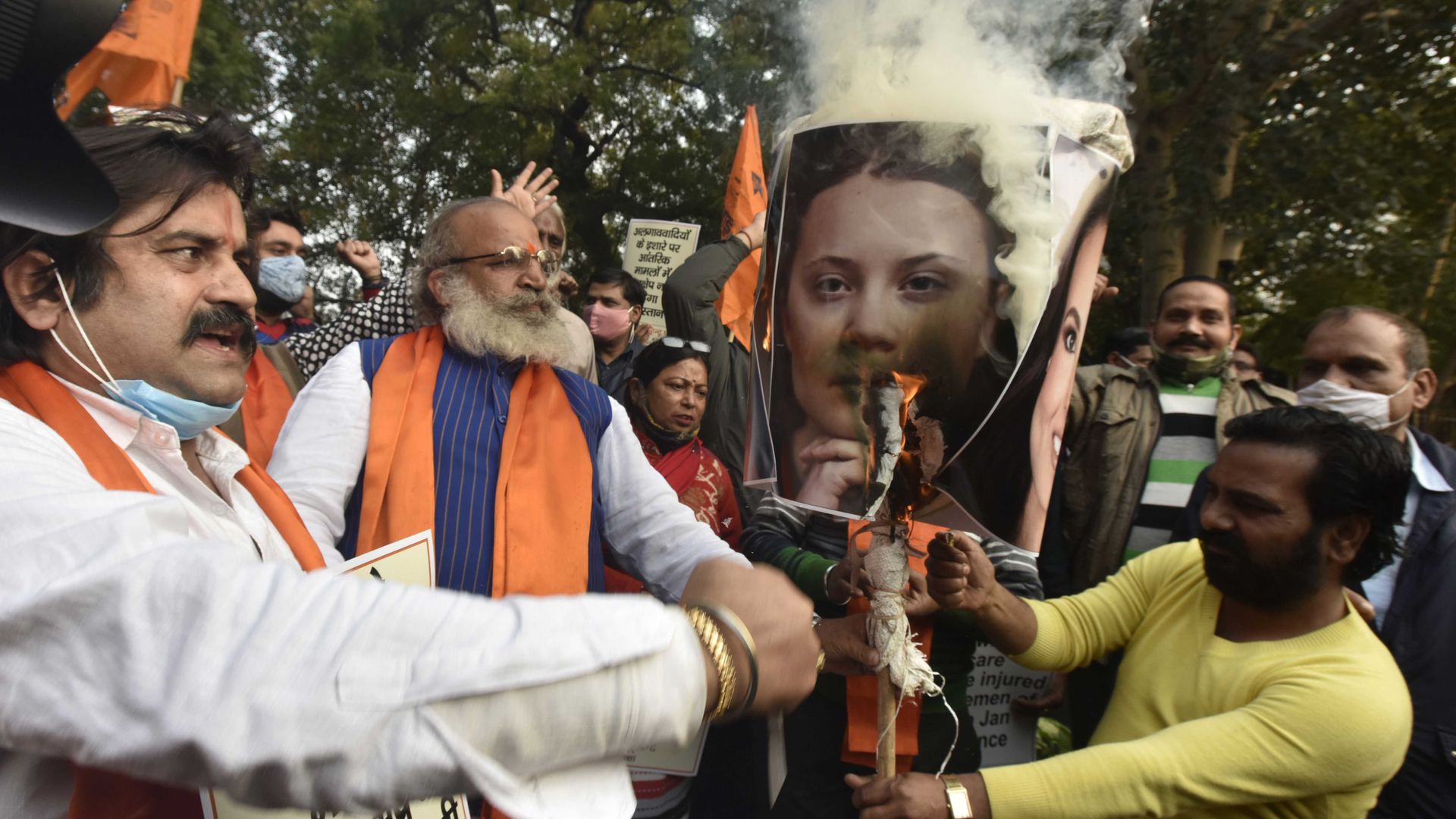 - Activists from the United Hindu Front today burned pictures of Thunberg and singer Rihanna, who had also called attention to the protests on social media.