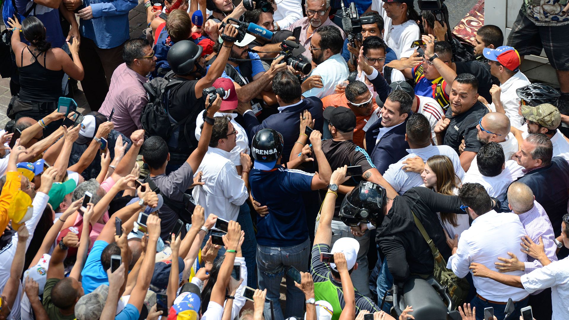Where's Guaidó? He was greeted at the airport by a throng of press and supporters. Photo: Matias Delacroix/AFP/Getty Images