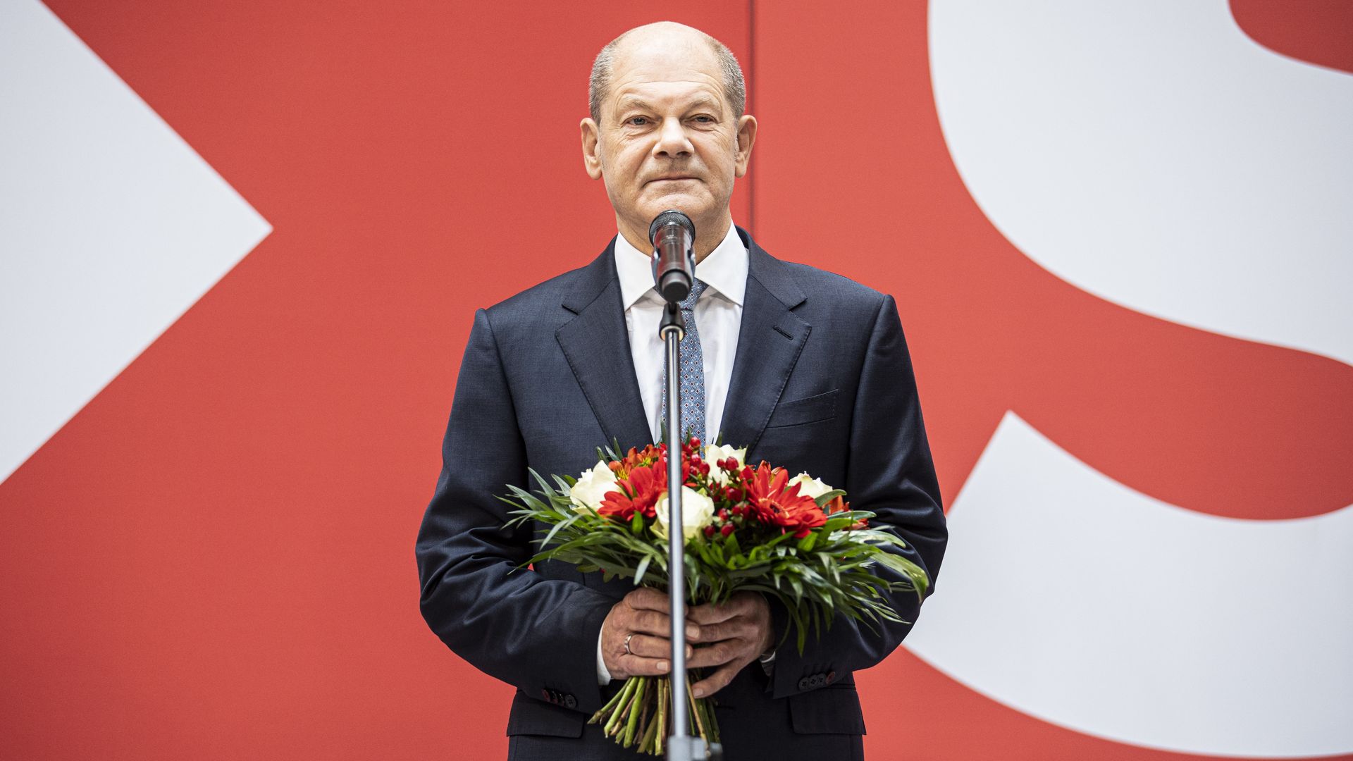 Olaf Scholz caught the bouquet on Sunday. Photo: Florian Gaertner/Photothek via Getty