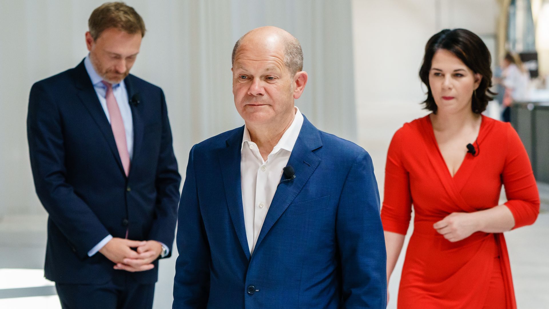 Will you be my traffic light? Lindner (left) of the FDP, Scholz (C) and Baerbock of the Greens. Photo: Clemens Bilan/Pool/Getty