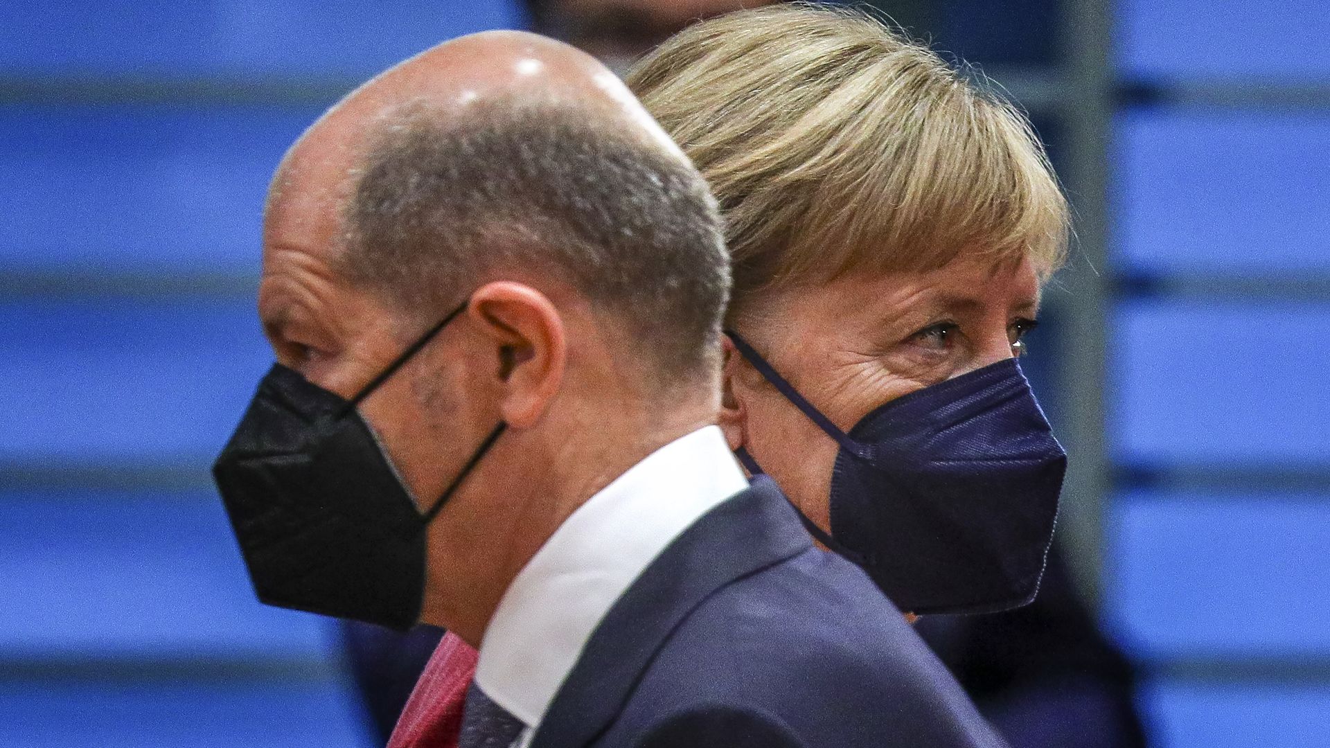 Scholz passes Merkel. Photo: Omer Messinger/Getty Images