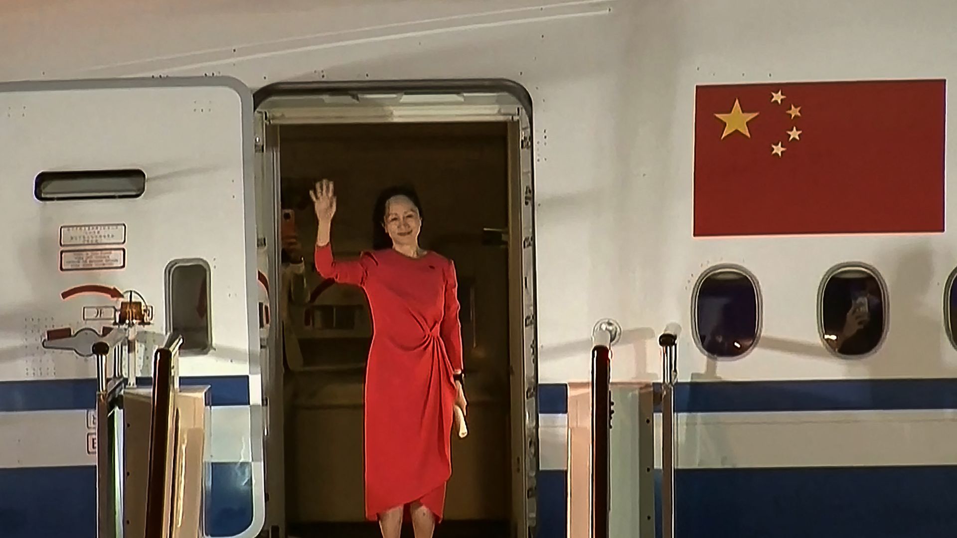Meng Wanzhou touches down in China. Photo: CCTV/AFP via Getty