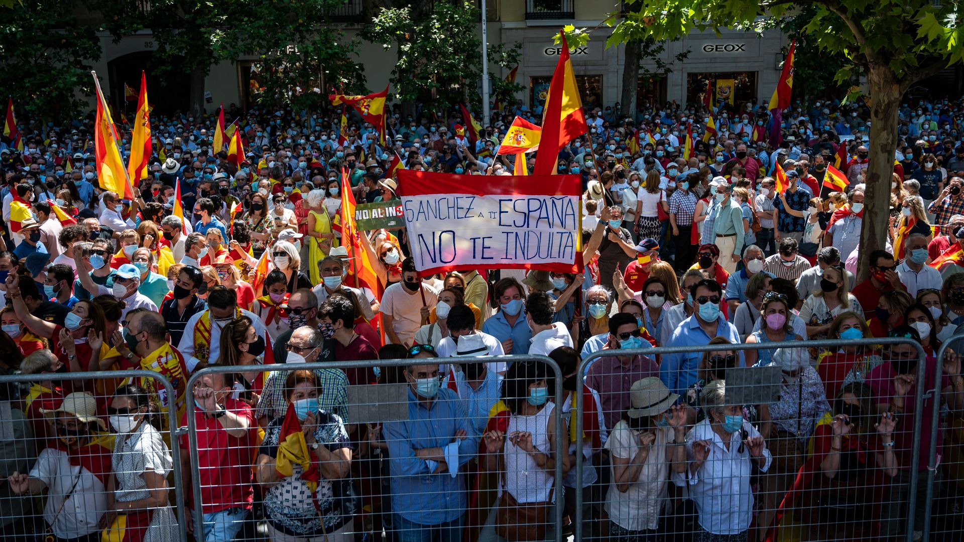 Protesting the pardons of Catalan leaders, in Madrid. Photo: Marcos del Mazo/LightRocket via Getty