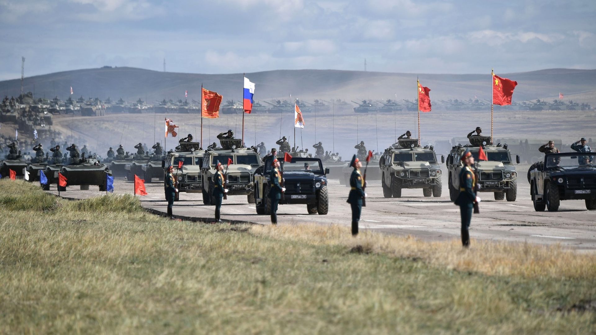 Chinese and Russian forces take part in the 2018 Vostok war games. Photo: Russian Presidency handout via Getty