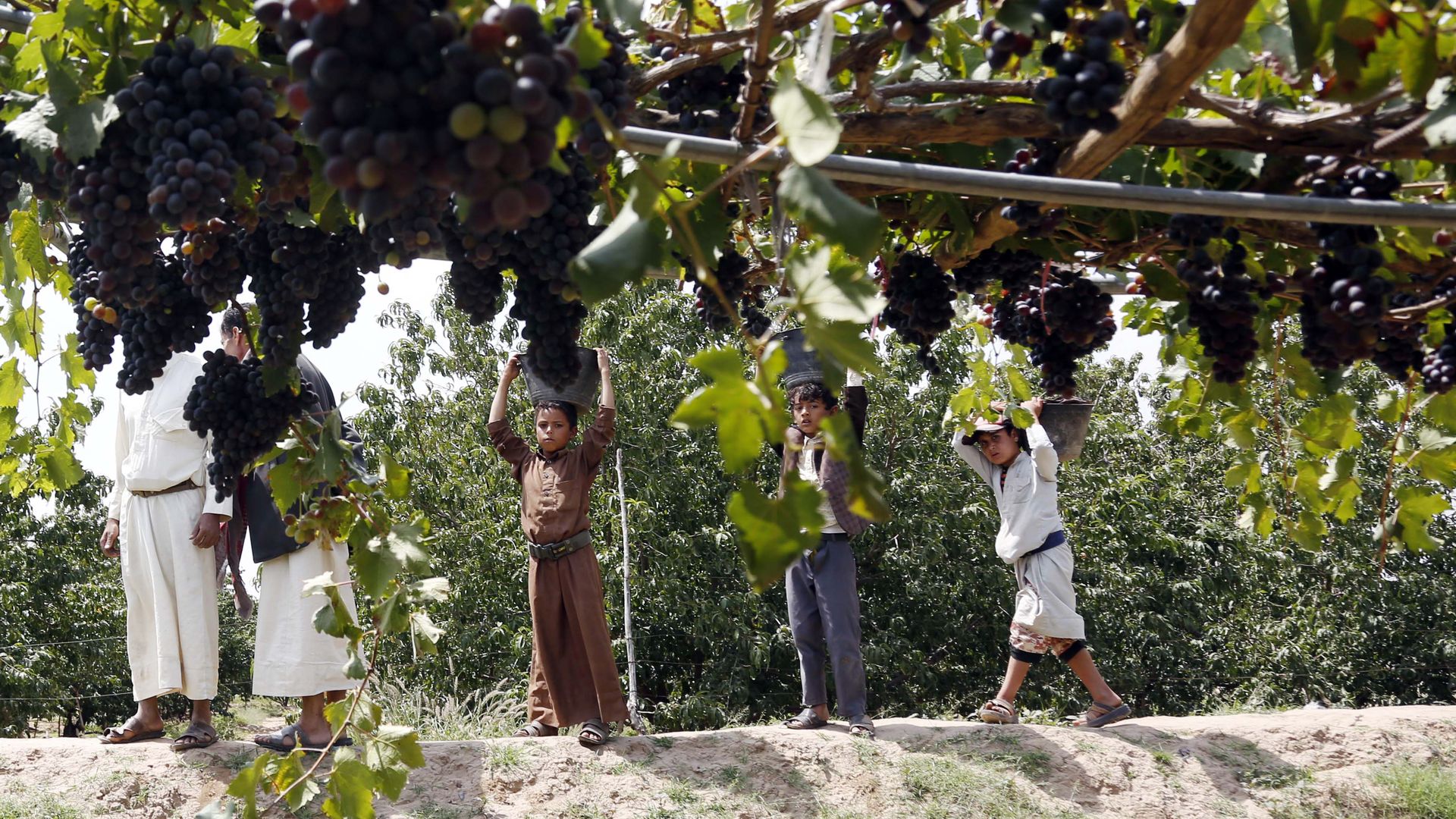 Harvesting grapes in Yemen. Photo: Mohammed Hamoud/Getty Images