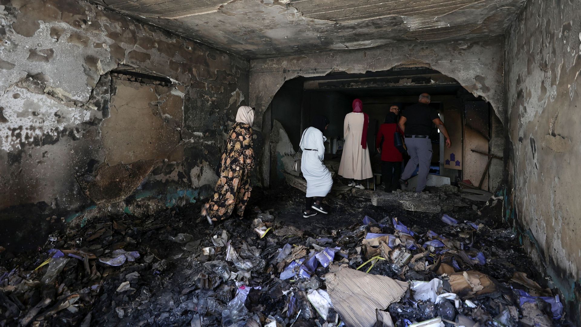 Residents assess the damage inside a shop in Jenin's refugee camp. Photo: Zain Jaafar/AFP via Getty Images