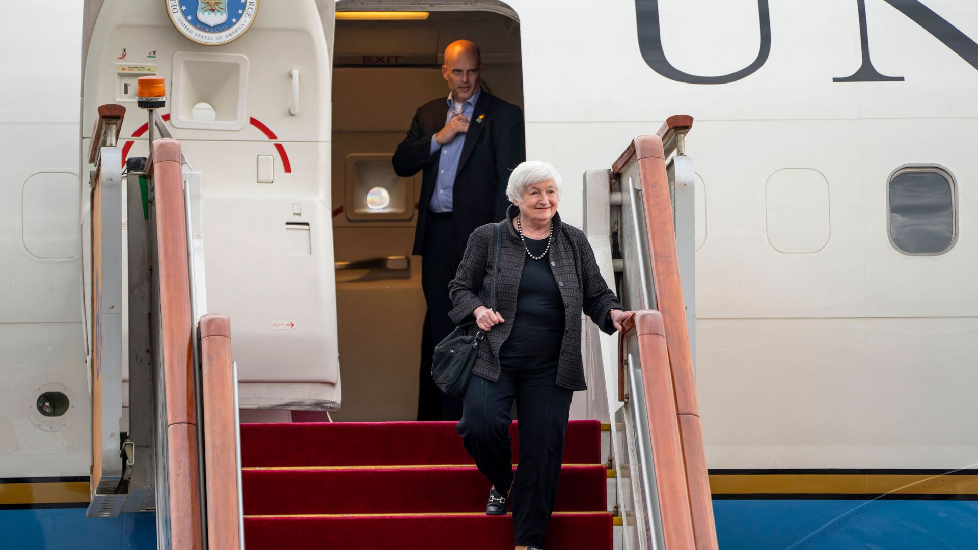 Janet Yellen arrives today in Beijing. Photo: Mark Schiefellin/Pool via Getty Images