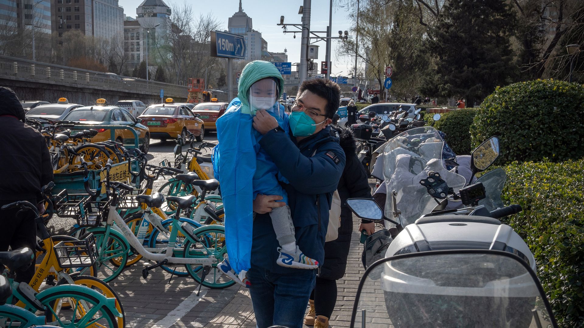 On the move in Beijing. Photo: Bloomberg via Getty Images